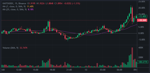 KAITO показал наибольший внутридневной прирост с полуночи, увеличившись на 10.94%.
