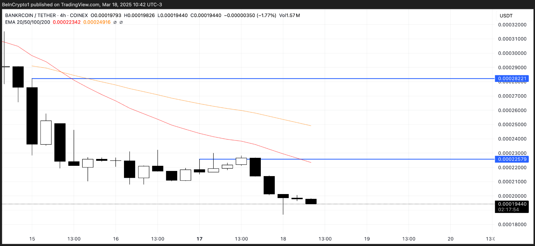 ! altcoins 3 อันดับแรกถูกขายโดยกระเป๋าเงิน Smart Money ในเดือนมีนาคมBNKR การวิเคราะห์ราคา | HyperX ที่มา: TradingView หากแรงขายยังคงดําเนินต่อไป BNKR อาจสูญเสียโมเมนตัมขาขึ้นและลดลงต่ํากว่าระดับแนวรับหลักที่ $0.00019 หรือแม้แต่ $0.00018 ซึ่งเป็นระดับต่ําสุดนับตั้งแต่กลางเดือนกุมภาพันธ์