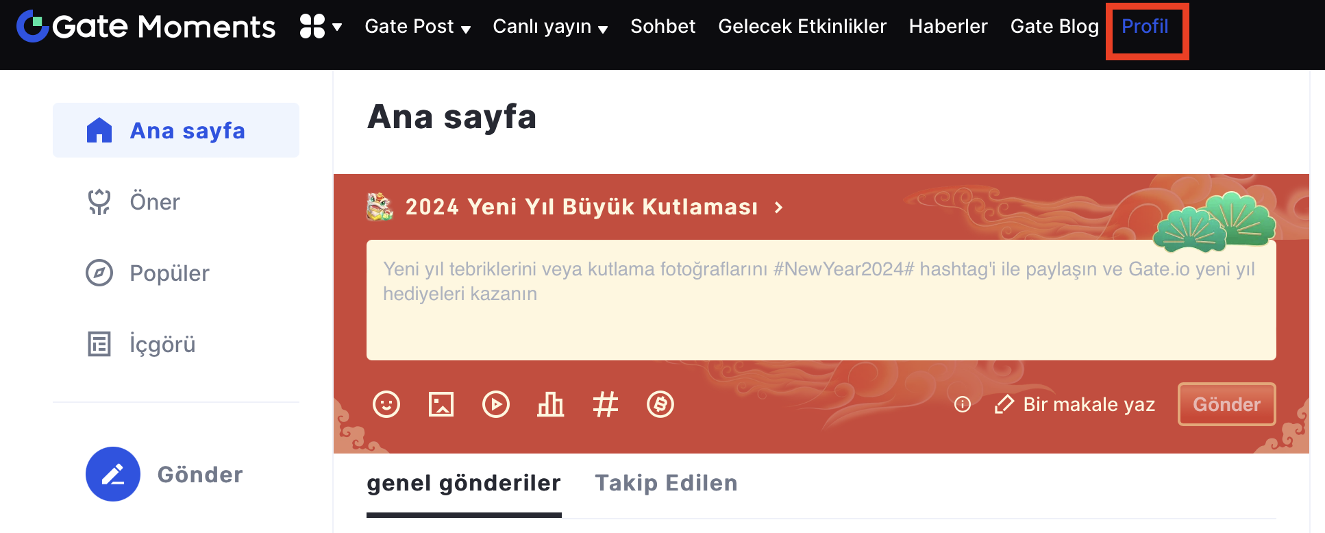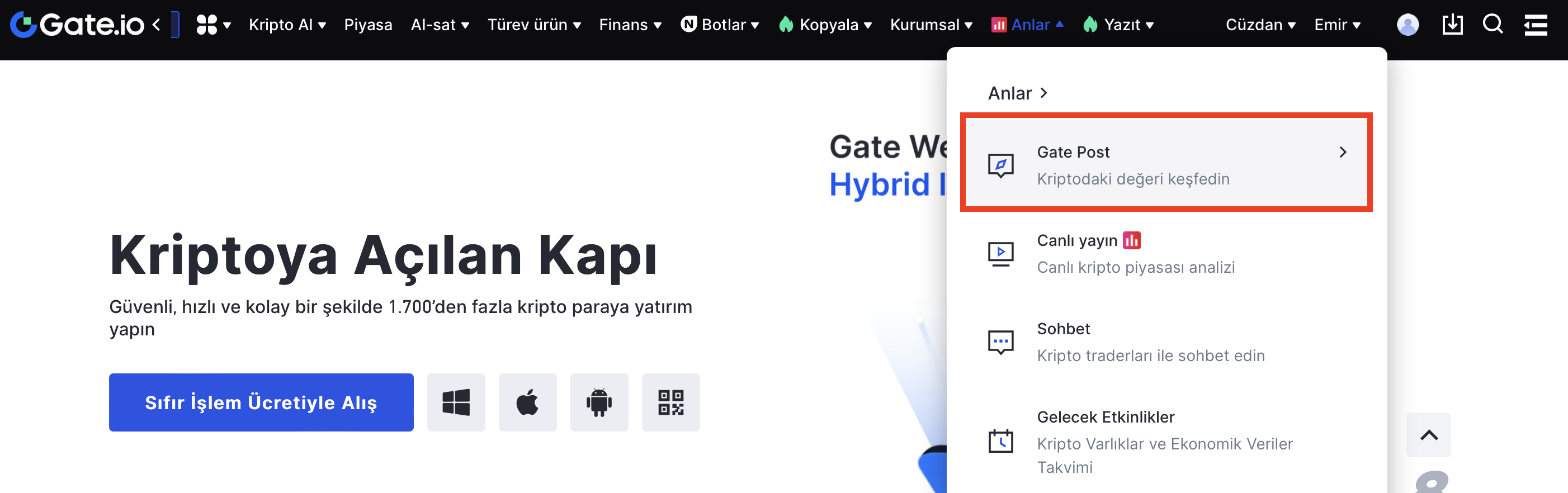 Gate hesabınıza giriş yapın. İmlecinizi gezinti çubuğundaki "Anlar" üzerine getirin ve "Gate Post"e tıklayın.