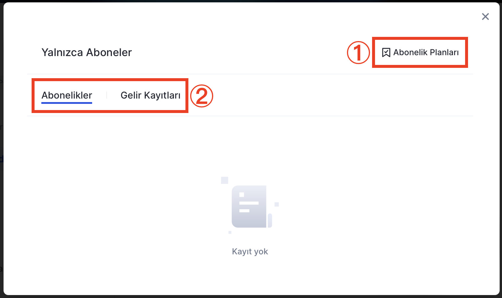 [Gelir kayıtları]: Abonelik özelliğinden kaynaklanan gelir kayıtlarınızı görüntülemek için tıklayın.