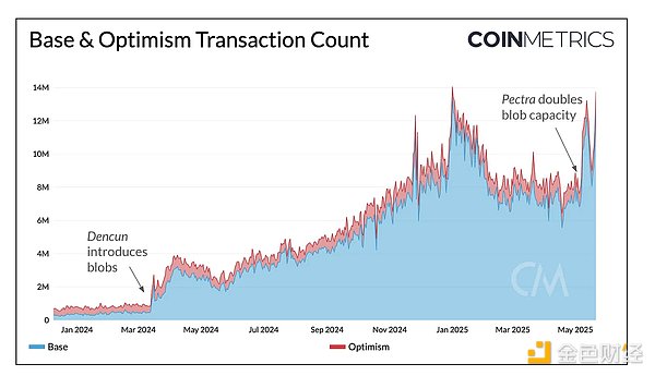 Layer-2 solutions like Base and Optimism have seen an increase in throughput, with transaction numbers surging from 8 million to 14 million after the Pectra upgrade. This trend is similar to the situation when the Dencun upgrade first introduced blobs in March 2024. If Ethereum hopes to derive more value from blob fees, Rollups need to gradually increase the usage of blobs and push it towards the new block limit (6 blobs per block).