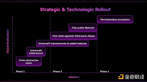 - Permissioned Ecosystem (Q1, 25): Currently, the Particle Network team is building core high-quality applications using Universal Accounts. UniversalX has been launched as the first chain-agnostic mainnet application, supporting on-chain transactions using a consolidated balance from each chain. In the future, to continue nurturing its ecosystem, Particle will launch two additional chain abstraction applications covering fundamental use cases.