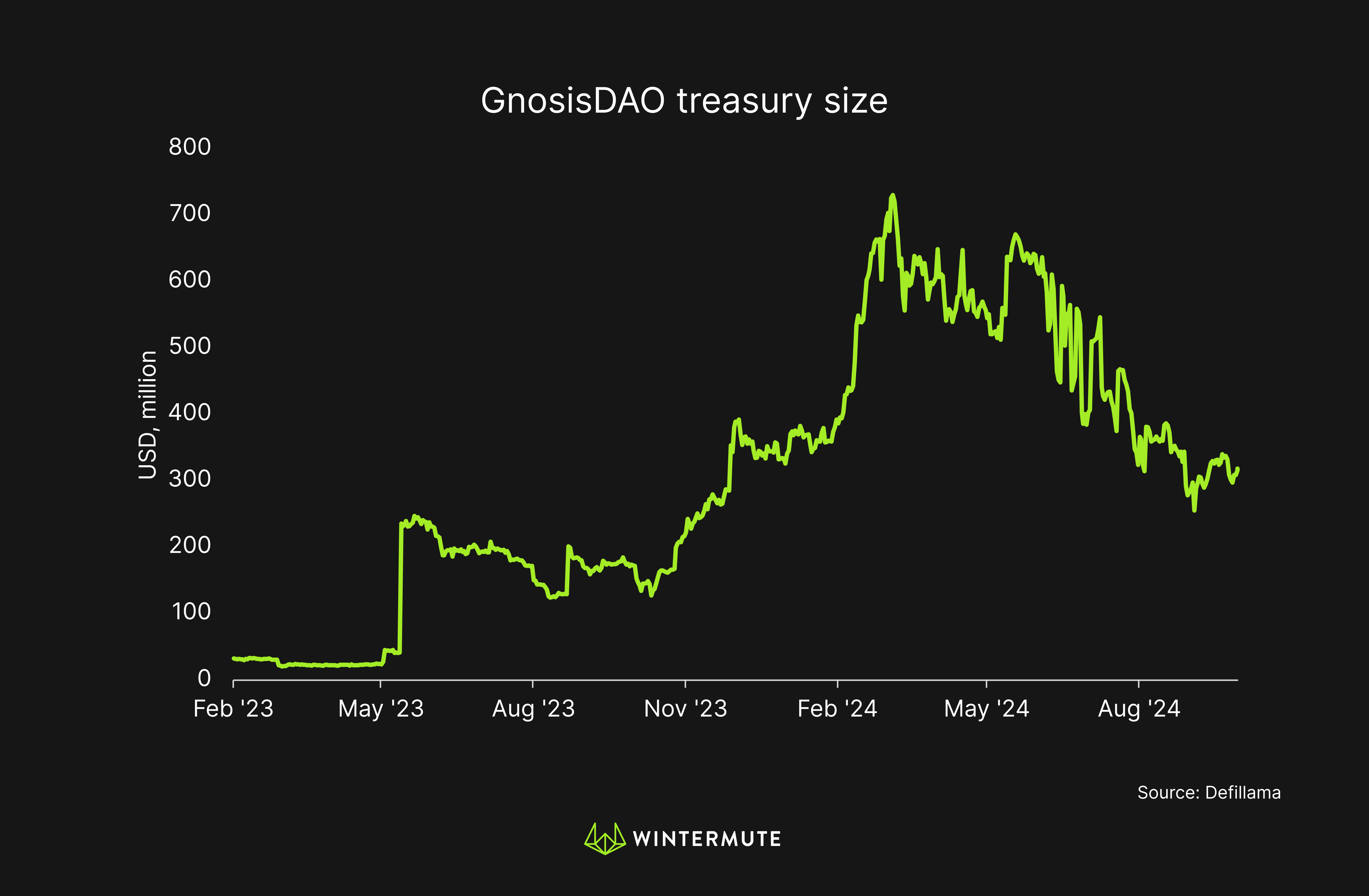 • The GnosisDAO has a $600M+ treasury, which Karpatkey actively manages, with more than half of it in GNO and ETH.