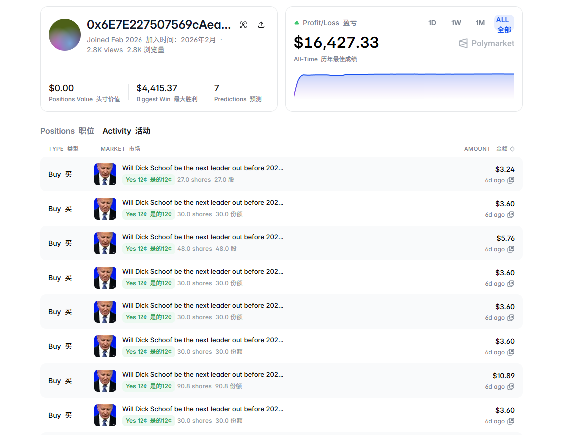 PANews examined a community-flagged attacker address that was registered in February 2026. It participated in only 7 markets but has already recorded a total profit of $16,427, with most gains made within a single day. When a leading prediction market valued at $9 billion can have its liquidity foundation shaken by just a few cents in transaction costs, it reveals far more than just a technical vulnerability.