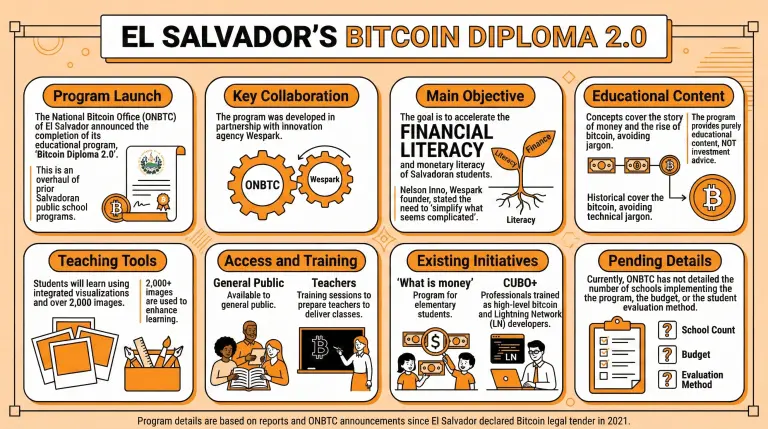 The program was developed by the National Bitcoin Office (ONBTC) in partnership with innovation agency Wespark, aiming to simplify bitcoin concepts for Salvadoran students.