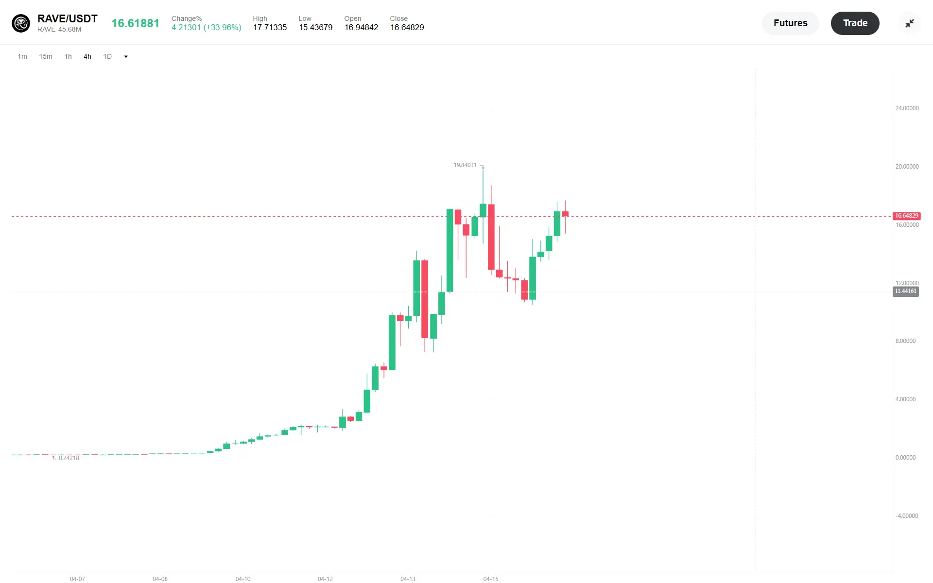 📊 Market Snapshot: RAVE/USDT is currently trading near $16.62, showing an explosive +32% gain in 24 hours and an unbelievable +931% surge in the last 7 days. This type of move clearly indicates extreme hype and aggressive market participation.