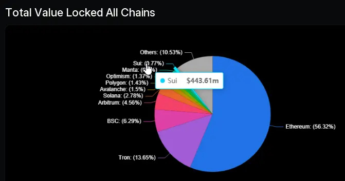 SUI TVL at $443.61 million. Source: Defillama