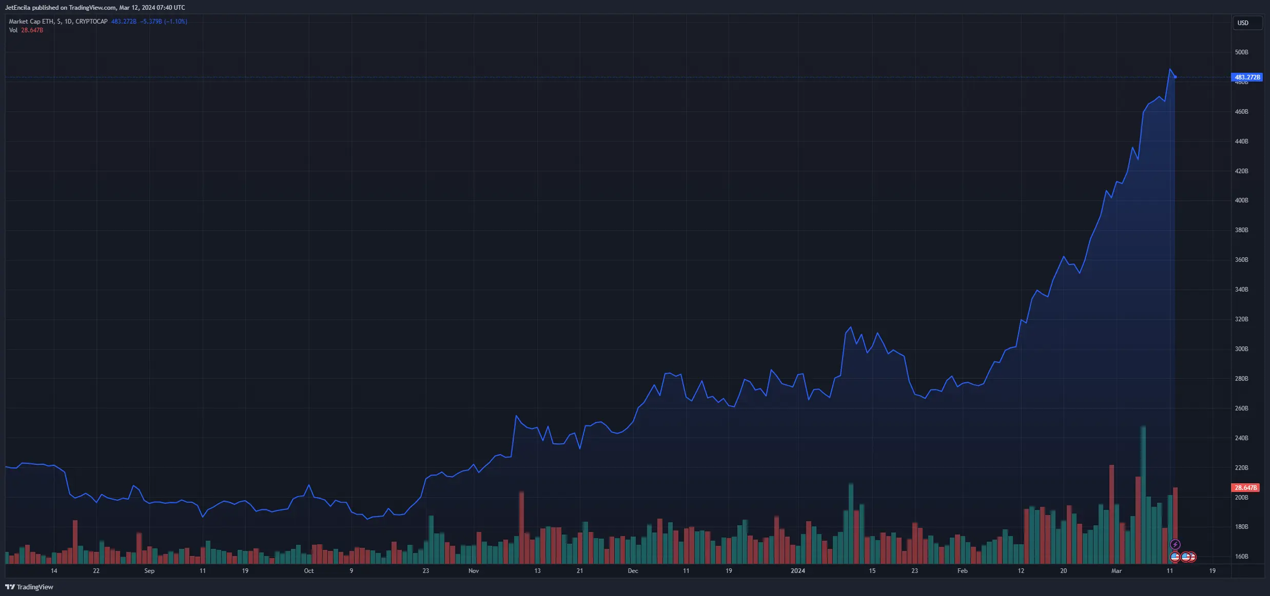 Ether market cap currently at $483 billion. Chart: TradingView.com