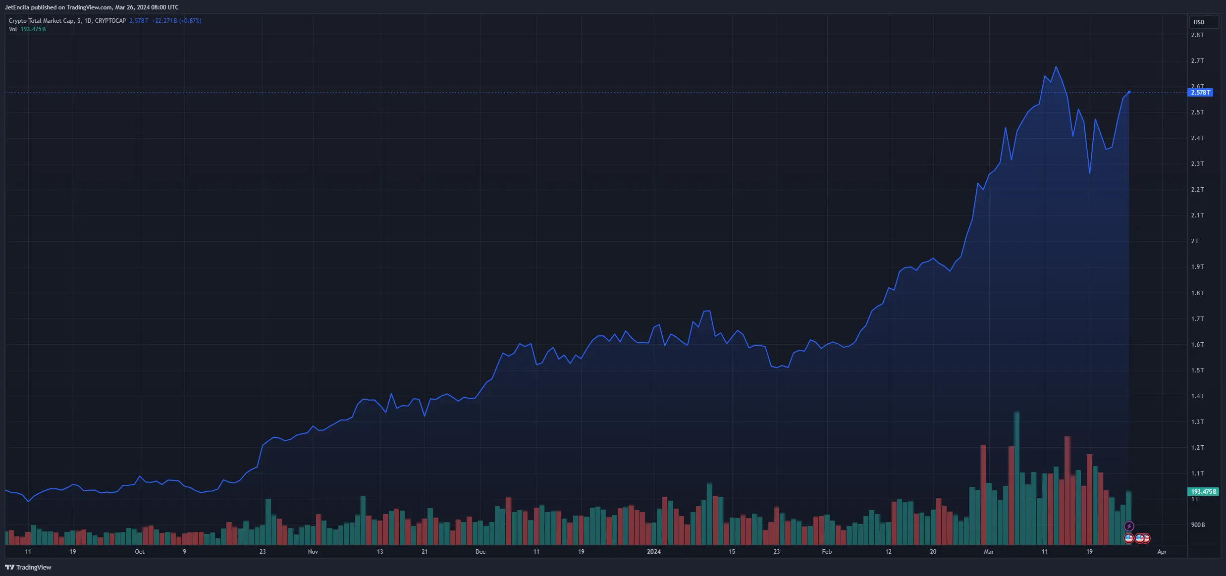 Total crypto market cap at $2.5 trillion on the daily chart: TradingView.com