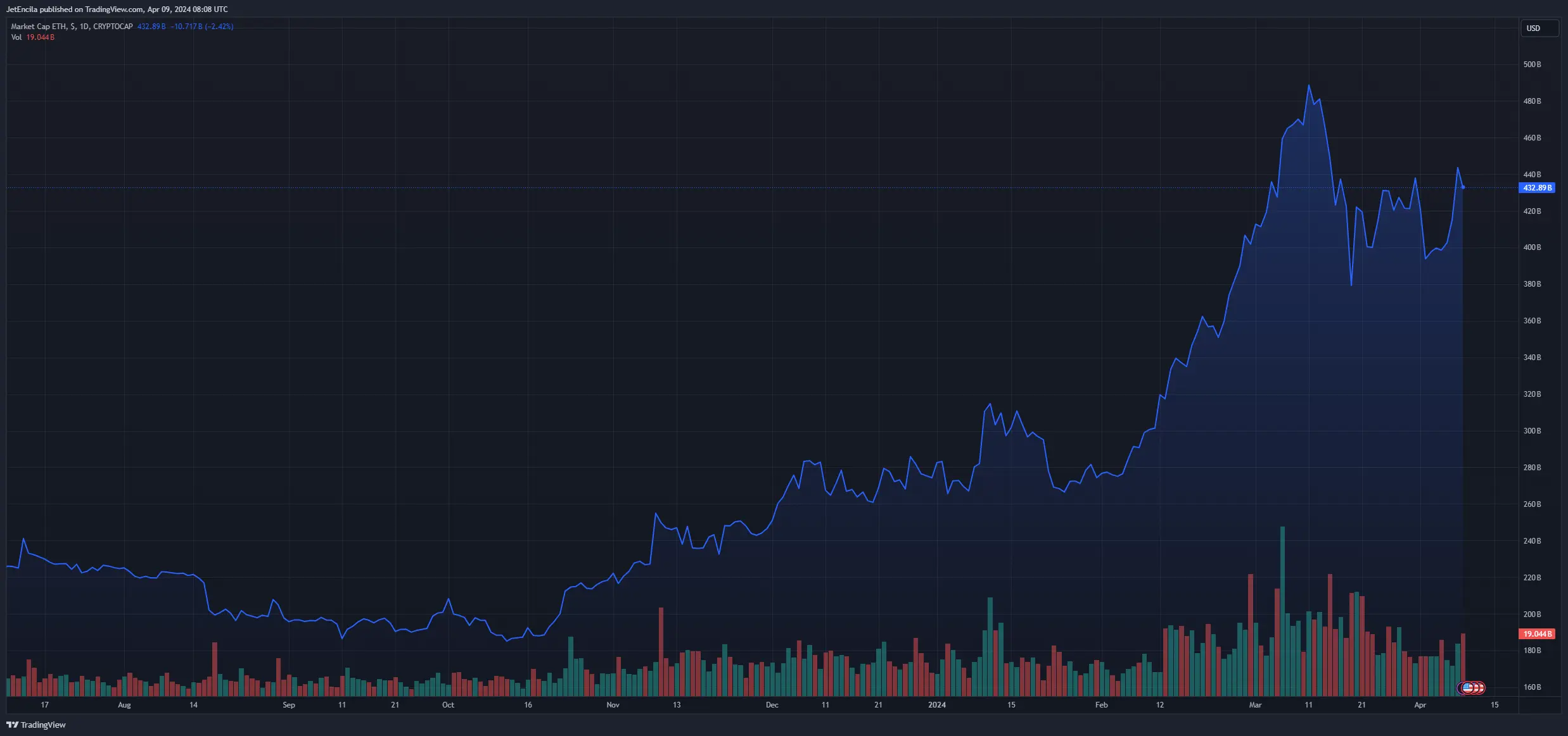 Ethereum market cap currently at $1.3 trillion. Chart: TradingView.com