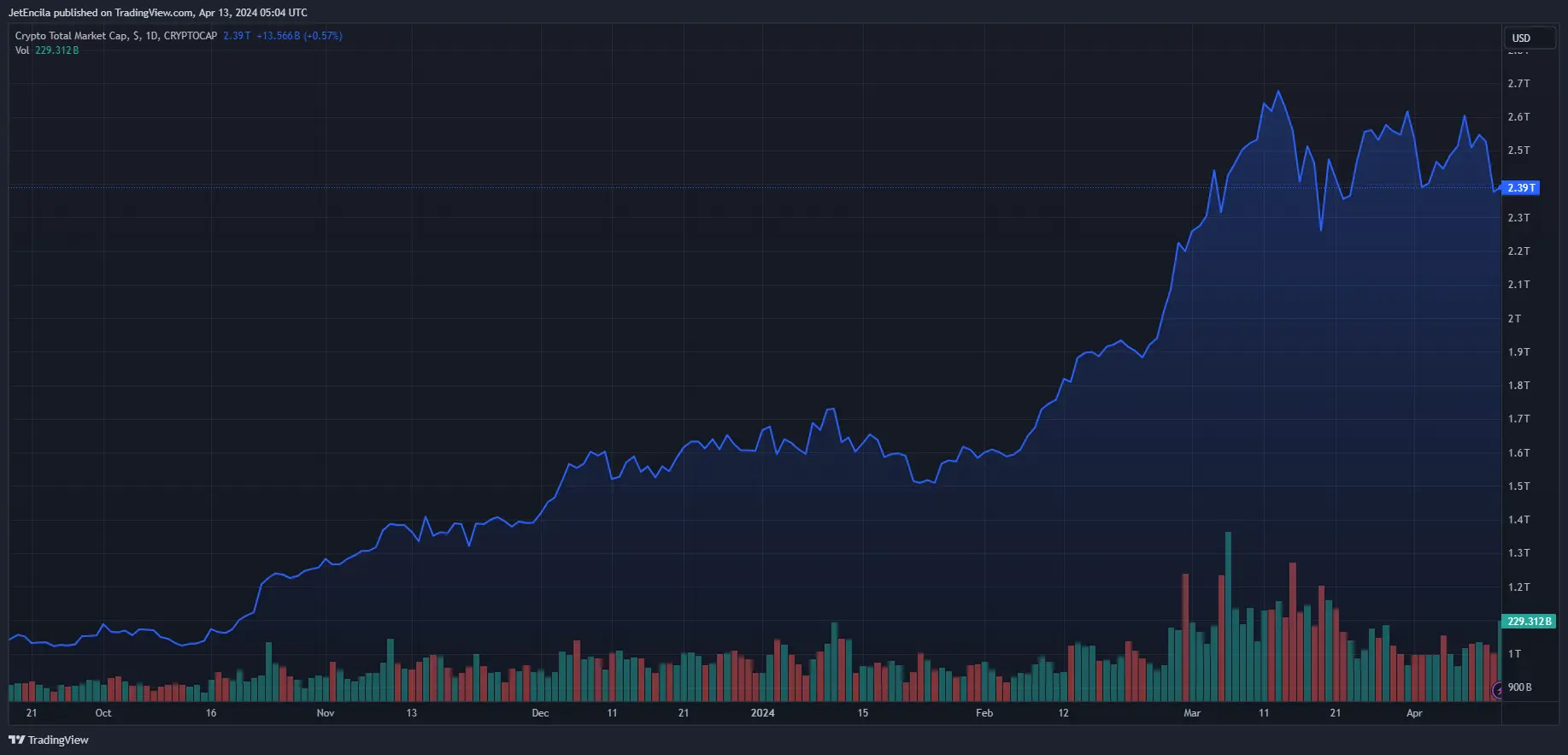 Total crypto market cap is currently at $2.39 trillion. Chart: TradingView