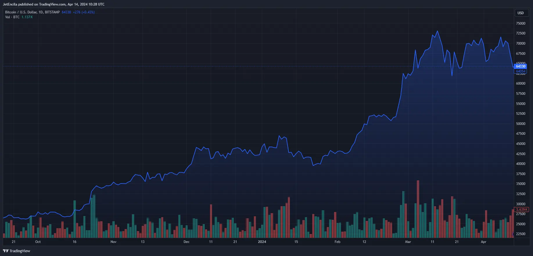 Bitcoin is now trading at $64.330. Chart: TradingView