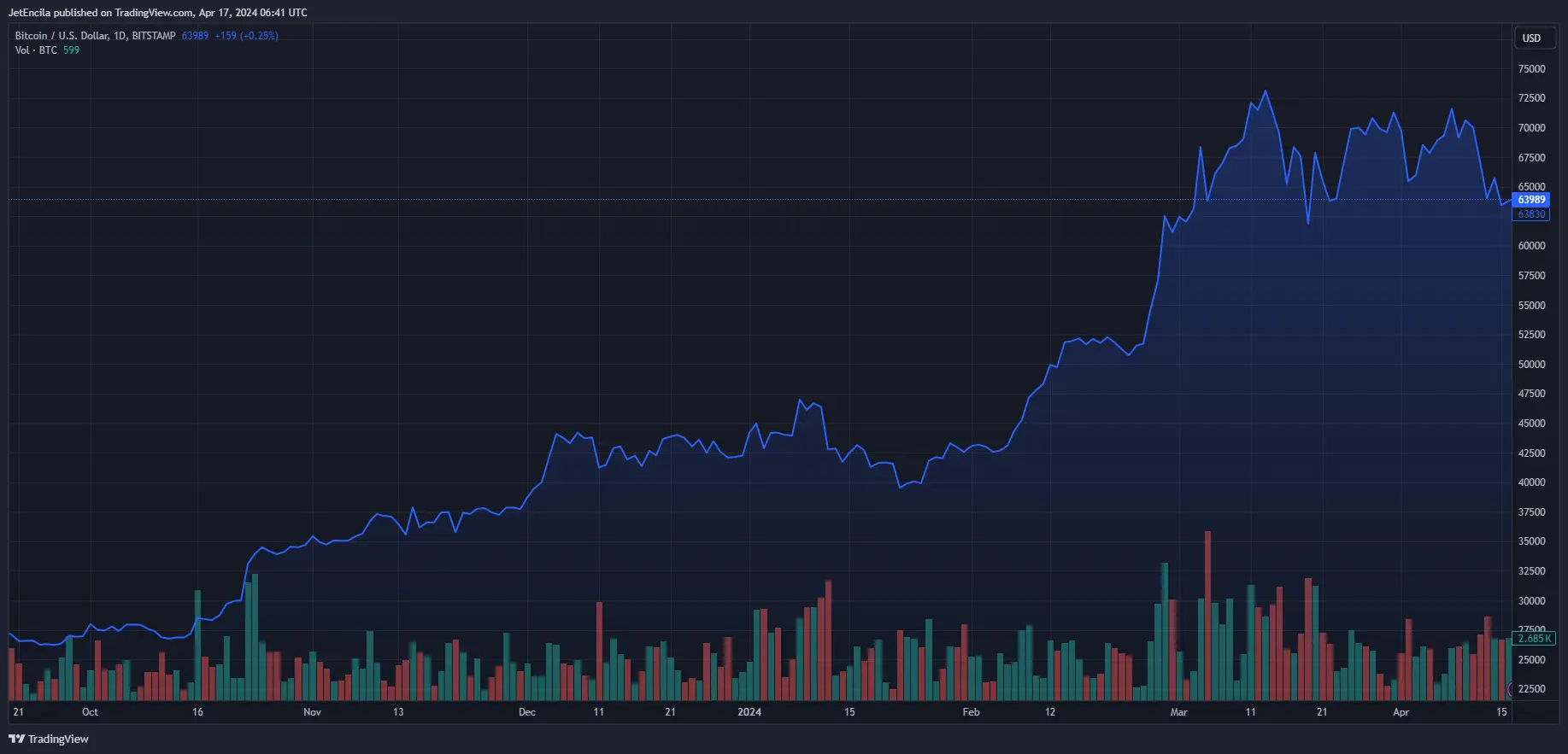 Bitcoin is currently trading at $63.989. Chart: TradingView
