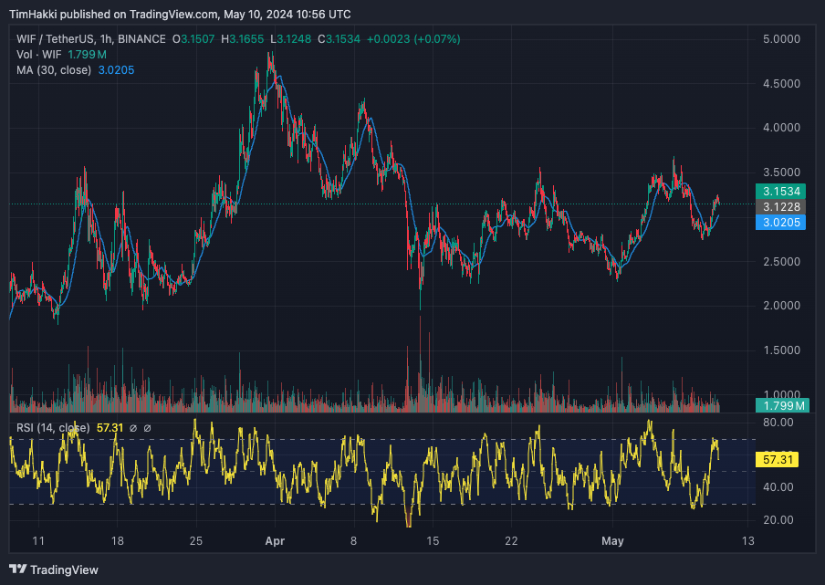 WIF is up 12% in the last 24 hours and 15% in the last week. It’s moving broadly in line with the rest of the market, where most leading projects are up today.