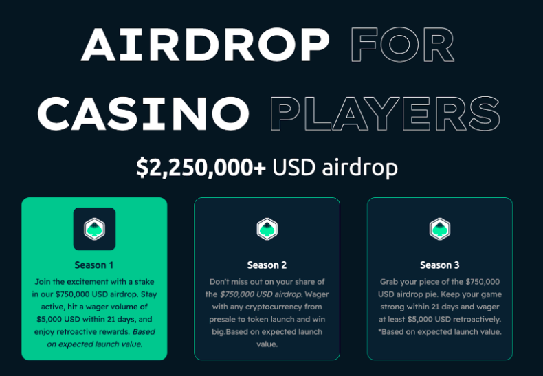 Players who wager a minimum of $5,000 in a 21-day period will be eligible for the airdrops and retroactive rewards.