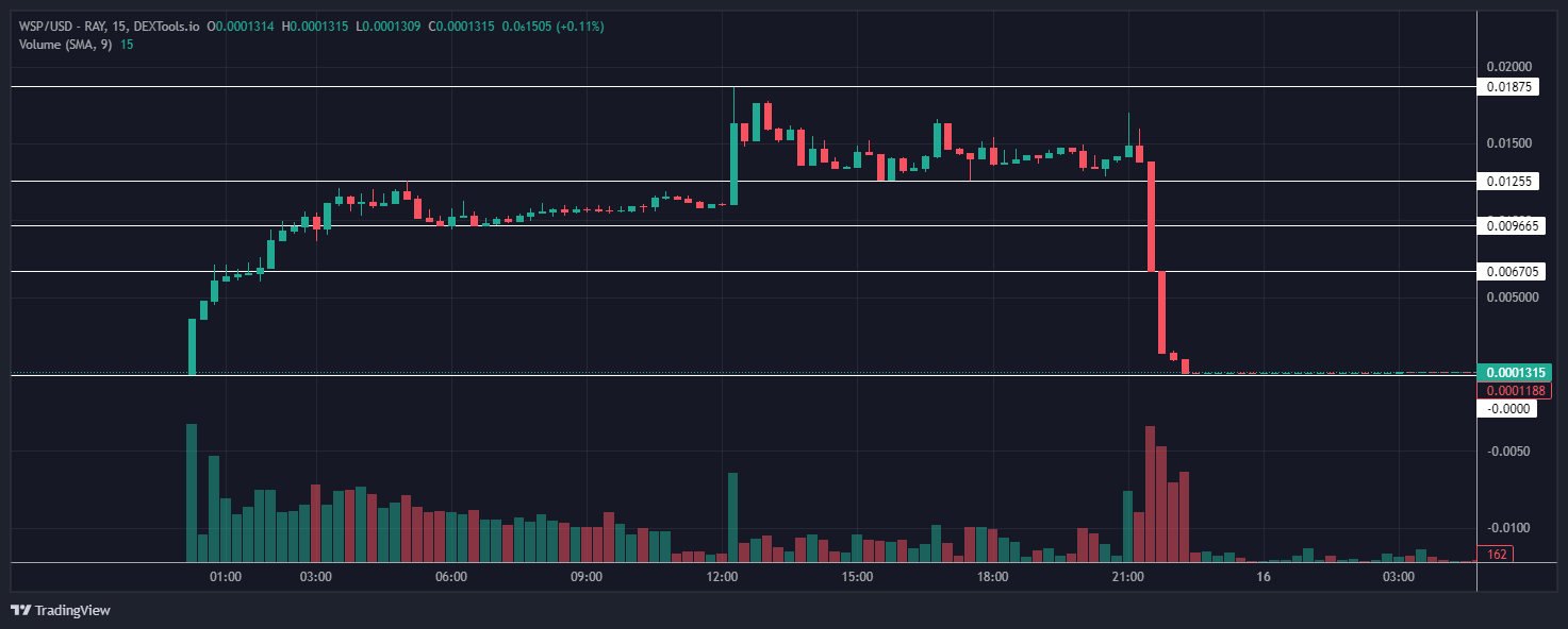 This comes after WSP price shocked retail markets Yesterday, mounting an incredible +14,400% rally to hit an all-time high at $0.01875.