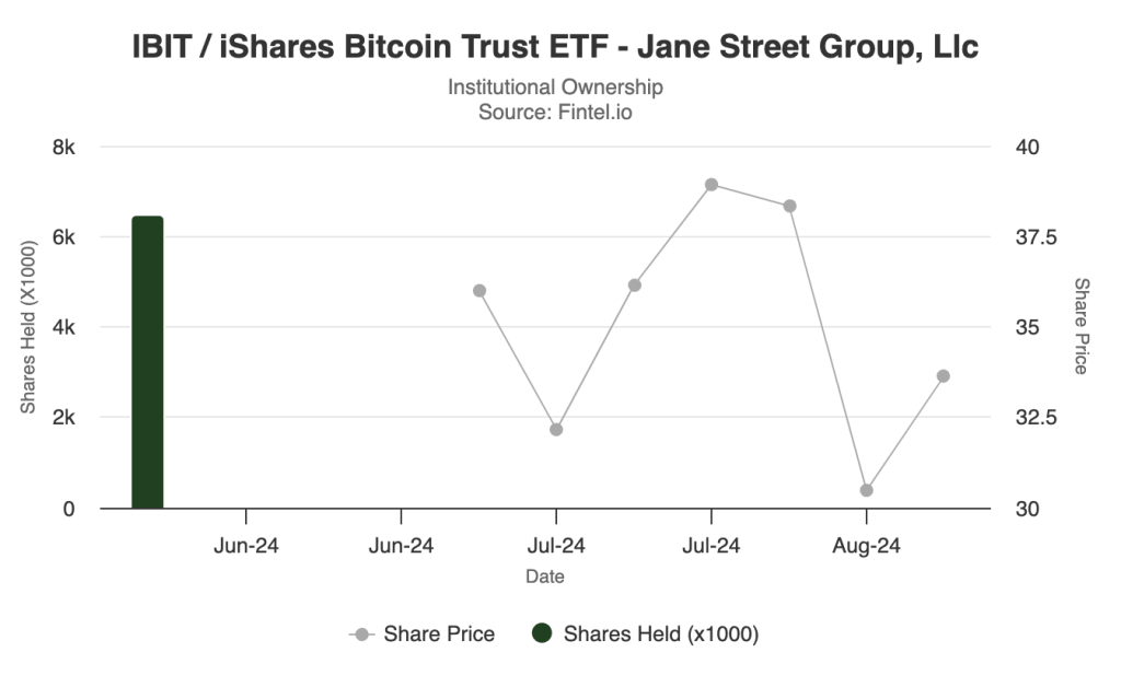 Latest data from Fintel shows Jane Street made its first purchase of IBIT, the newly launched spot Bitcoin exchange-traded fund (ETF) in the second quarter of this year.