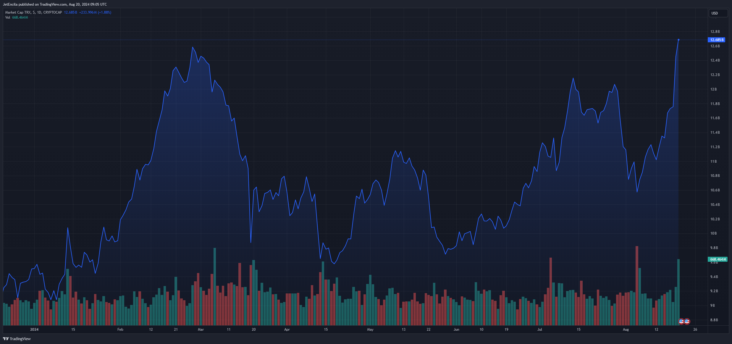 TRX market cap currently at $12.6 billion. Chart: TradingView.com