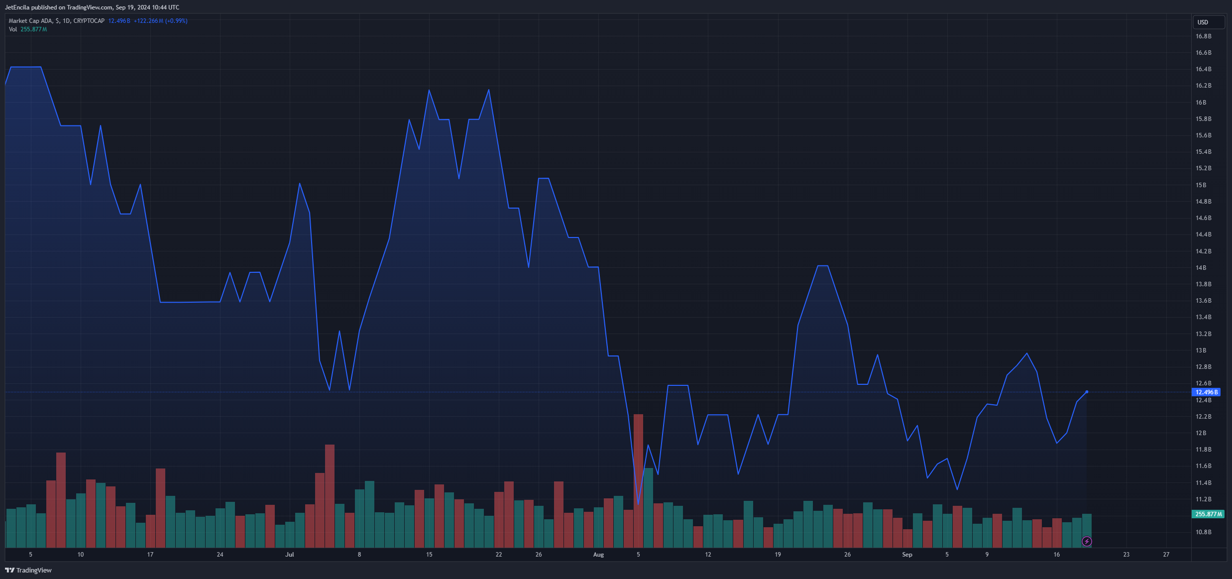 ADA market cap currently at $12.4 billion. Chart: TradingView.com## Price Struggles To Gather Steam