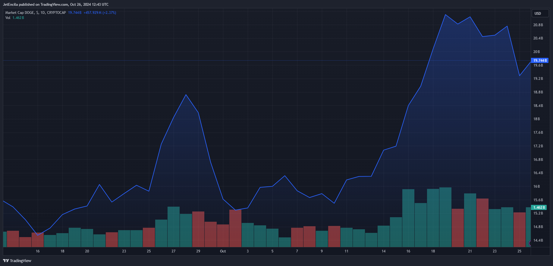 In addition to this, a $24 price surge for Dogecoin would also require its market capitalization to reach trillions of dollars. As of writing, Dogecoin’s market cap sits at $19.6 billion, meaning it would need to surpass Bitcoin’s market capitalization which is currently $1.3 trillion to hit this price level
