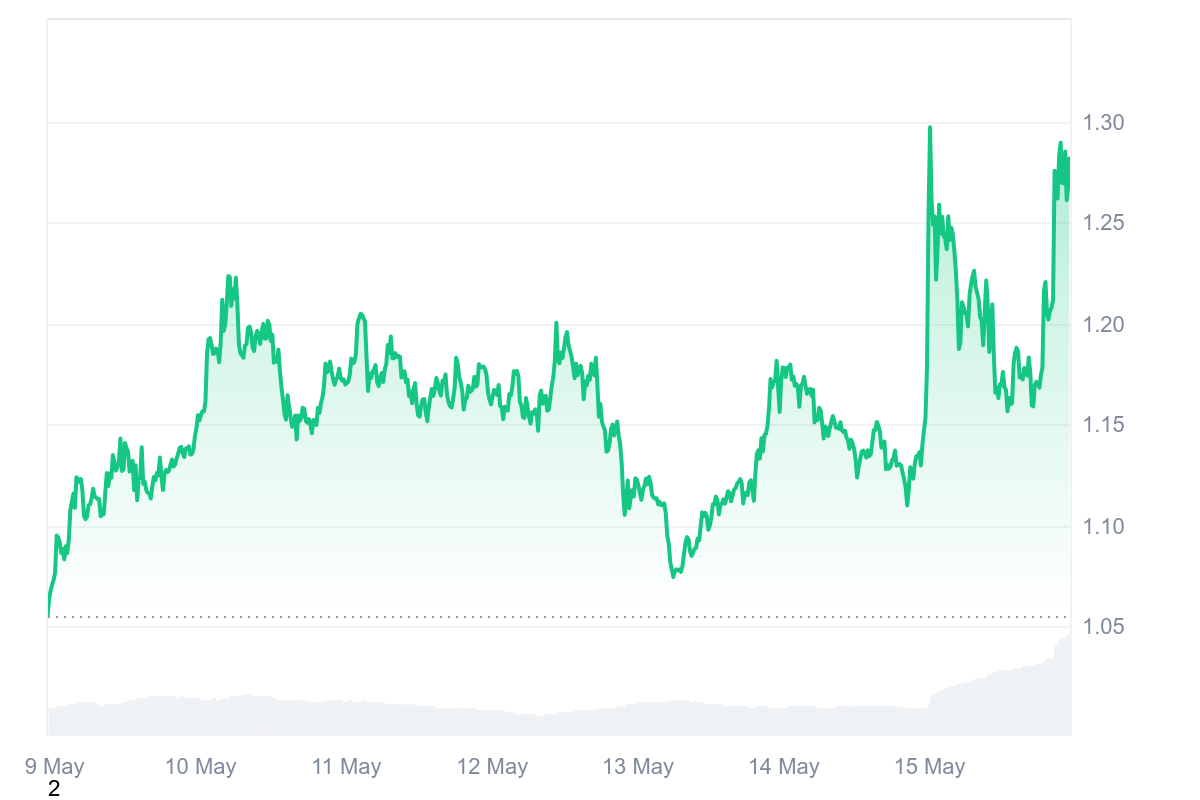 Оскільки провідні монети намагалися відновитися після зниження прибутків раніше вдень, ціна FTT зросла на 14%, досягнувши максимуму в $1.33.