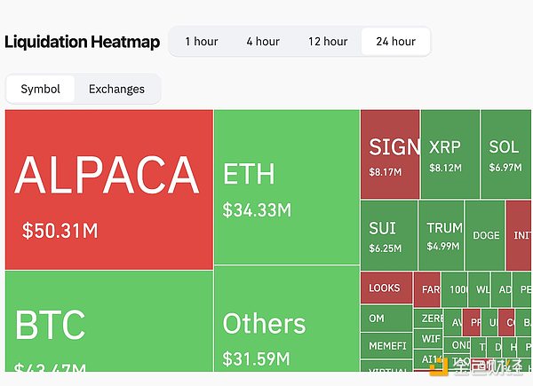 А до 30 квітня ціна зросла майже в 50 разів з моменту оголошення. Згідно з даними Coinglass, за останні 24 години ліквідація токенів ALPACA досягла $50 млн, перевищивши показники Bitcoin.