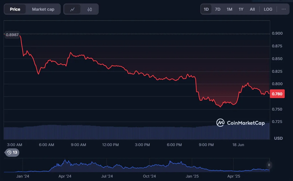 Нижче наведено графік, який демонструє тиск, два сильних падіння перевищили 6,5%, сформувавши типовий подвійний спад. Технічний аналіз показує, що якщо бики не захоплять рівень опору, сигнал на продаж залишиться дійсним. Станом на сьогодні, аналітики встановили позицію на продаж на рівні 0,757 долара, цільова ціна становить 0,708 долара, а рівень стоп-лоссу – 0,783 долара. Це свідчить про те, що, якщо імпульс не зміниться, в короткостроковій перспективі буде більше простору для падіння.