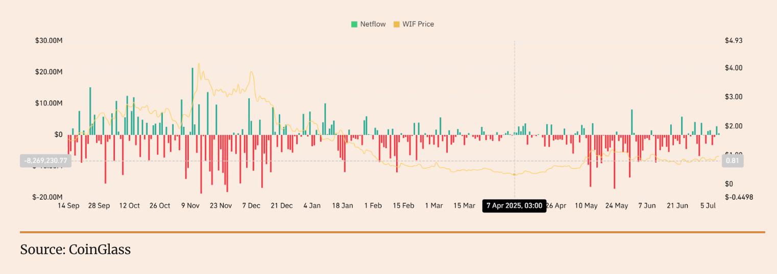 Інвестори WIF, які тривалий час перебували в сплячому стані, рішуче повертаються на ринок. Згідно з ончейн-даними Coinalyze: