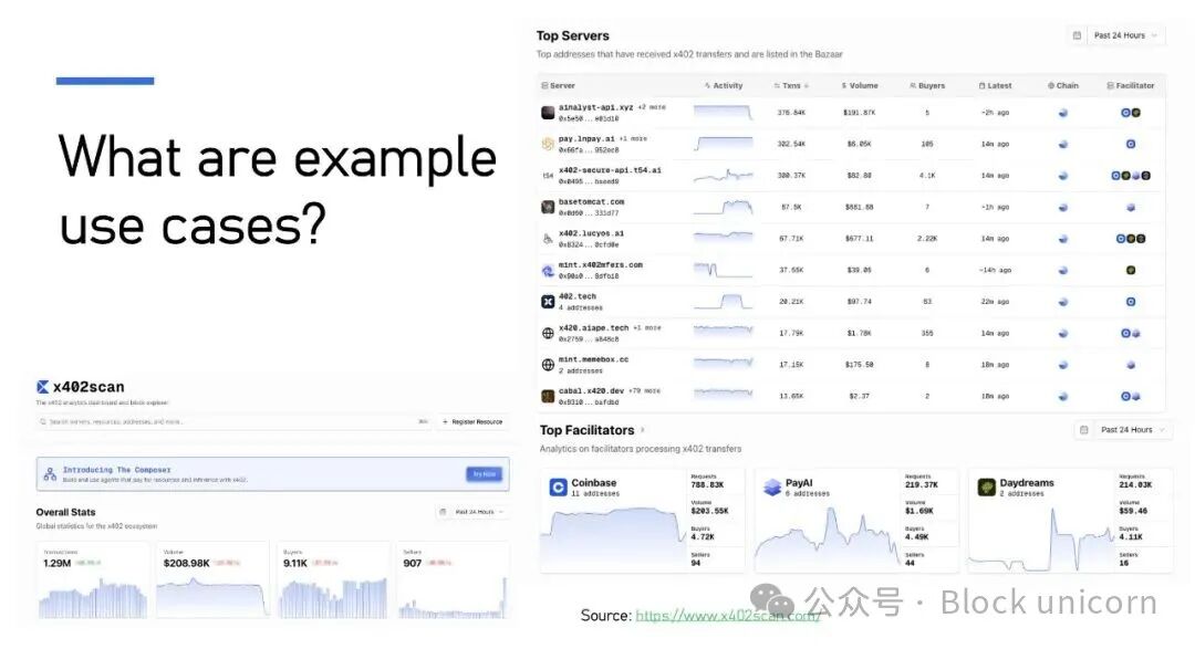 На вершині стеку протоколів децентралізованого штучного інтелекту (deAI) знаходиться x402, який представляє собою прикладний протокол для оплати між агентами за різні послуги (наприклад, зберігання файлів, електронна комерція, веб-скрапінг тощо). x402 був розроблений Coinbase і Cloudflare, він в основному розширює оригінальний код стану “HTTP 402: потрібно оплатити”, перетворюючи його на частину робочого процесу, що дозволяє агентам оплачувати витрати на послуги за допомогою стейблкоїнів.