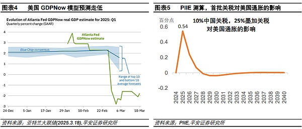 Але щодо того, що Пауел вважає, економічні “жорсткі дані” США все ще мають стійкість, ми займаємо обережну позицію. Модель GDPNow станом на 18 березня прогнозує, що ВВП США в першому кварталі зменшиться на 1,8% у річному обчисленні, при цьому споживання зросте лише на 0,4%. Слід зазначити, що більшість даних, на яких ґрунтується ця модель, є “жорсткими даними”, які мають тісний зв’язок з обліком ВВП (недавніми включно з роздрібними продажами, нерухомістю тощо). Принаймні в першому кварталі “жорсткі дані” США, можливо, вже значно охололи. За таким трендом прогноз економічного зростання на рік може ще мати простір для корекції.
