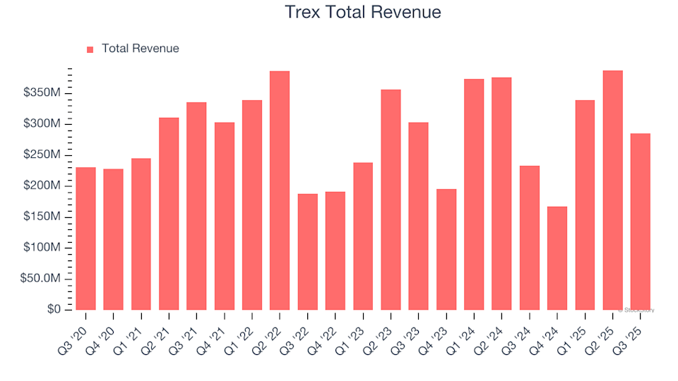Trex не виправдав очікувань аналітиків щодо доходів минулого кварталу, повідомивши про доходи у розмірі 285,3 мільйона доларів, що на 22,1% більше порівняно з минулим роком. Це був розчаровуючий квартал для компанії, оскільки прогноз річного доходу суттєво не відповідав очікуванням аналітиків, а прогноз доходу на наступний квартал також суттєво не відповідав очікуванням.