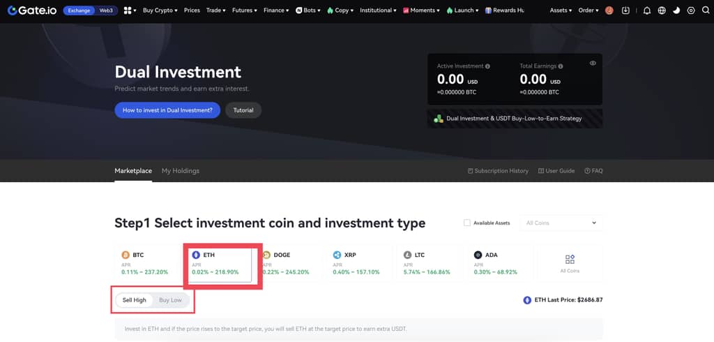 - Nếu bạn là người dùng Gate, hãy chọn đăng nhập vào tài khoản cá nhân Gate của bạn; nếu bạn không phải là người dùng Gate, bạn có thể đăng ký trước. Sau khi đăng nhập / đăng ký, nhấp vào [Tài chính ] trên thanh điều hướng - [sản phẩm tiền kép] để vào trang sản phầm tiền kép.