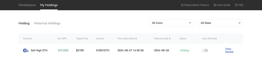 ① Bạn có thể xem "tỷ lệ lợi nhuận hàng năm", "tên", "giá liên kết tham khảo", "thời gian nắm giữ", "ngày đáo hạn", "phần còn lại" và các thông tin khác của sản phẩm.
