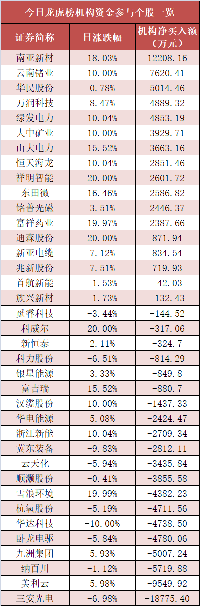 Dữ liệu sau giờ giao dịch cho thấy, nhiều tổ chức xuất hiện trên các cổ phiếu, trong đó cổ phiếu như Nanya New Material thể hiện dòng vốn ròng mua vào của tổ chức, còn cổ phiếu như Sanan Optoelectronics (600703) thể hiện dòng vốn ròng bán ra của tổ chức.