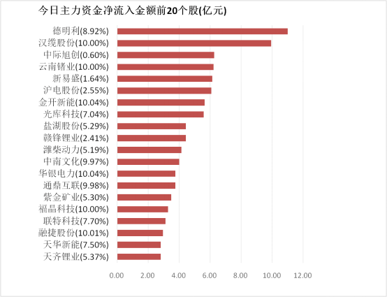 Trong ngày, dòng vốn chính ròng rút khỏi thị trường A shares là 9.388 tỷ nhân dân tệ khi mở cửa, và ròng chảy vào 8.861 tỷ nhân dân tệ vào cuối ngày, tổng thể dòng vốn ròng rút là 1,236 tỷ nhân dân tệ.