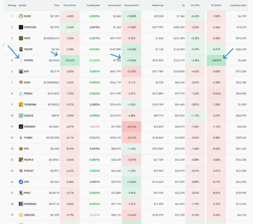 在過去24小時內,pippin (PIPPIN) 表現突破性上漲,漲幅高達59%,此前在整個memecoin板塊經歷了一段長時間的默默累積。該代幣的市值也跳升33%,從11月21日的約2,200萬美元低點攀升至2.3353億美元,正式突破舊有的波動區間,呈現穩健上行趨勢。