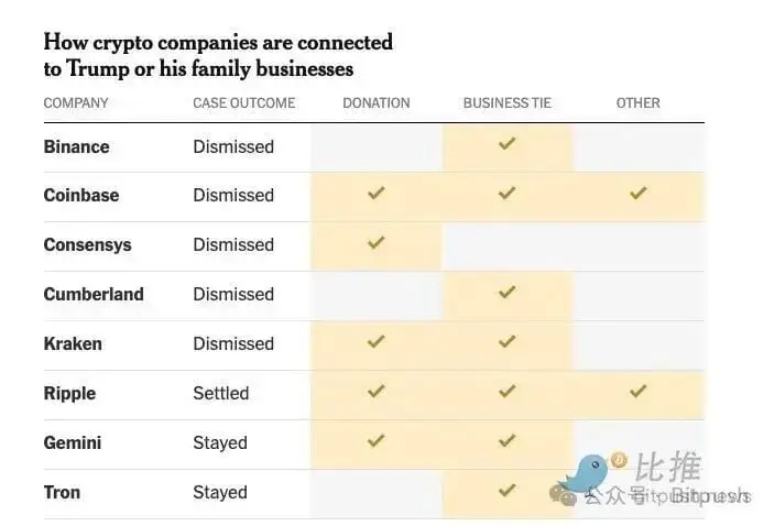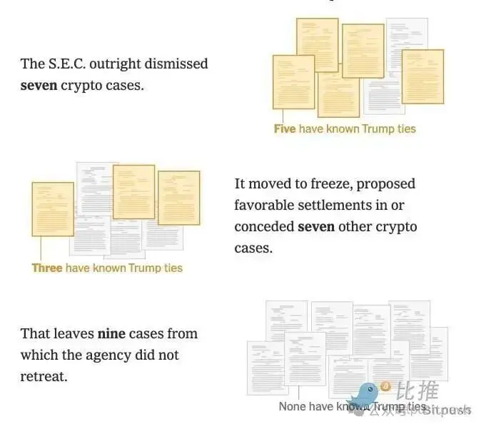 《紐約時報》調查發現,對於所有與特朗普家族加密業務存在關聯、或曾為其政治事業提供資金支持的企業,該機構均已採取退讓態度。目前SEC僅存的加密案件起訴對象,均為與特朗普無明顯關聯的不知名被告。