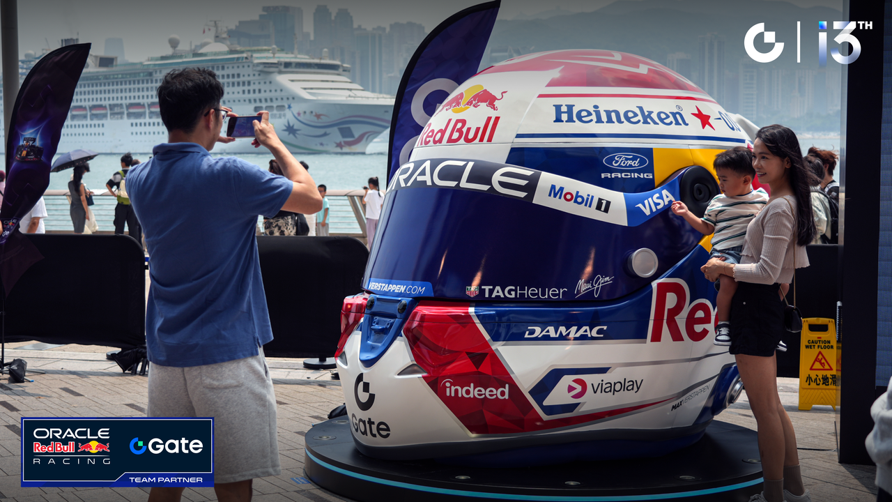 从 4 月 16 日的维港赛车巡游,到 4 月 18 日至 24 日的“Racing the Future:竞速未来”户外特展,再到 4 月 20 日的蓝地毯典礼与周年高端晚宴,Gate 以一系列密集且高规格的线下活动,在香港掀起了一场加密世界与 F1 赛道的跨界风暴。无论是首次亮相香港的 2026 全新红牛车队赛车、Max Verstappen 的巨型头盔装置,还是超 300 位行业领袖齐聚的维港晚宴,Gate 都在用行动证明:加密品牌不止于线上交易,更可以通过顶级体育 IP 与文化场景,与全球用户建立更深层次的情感连接。