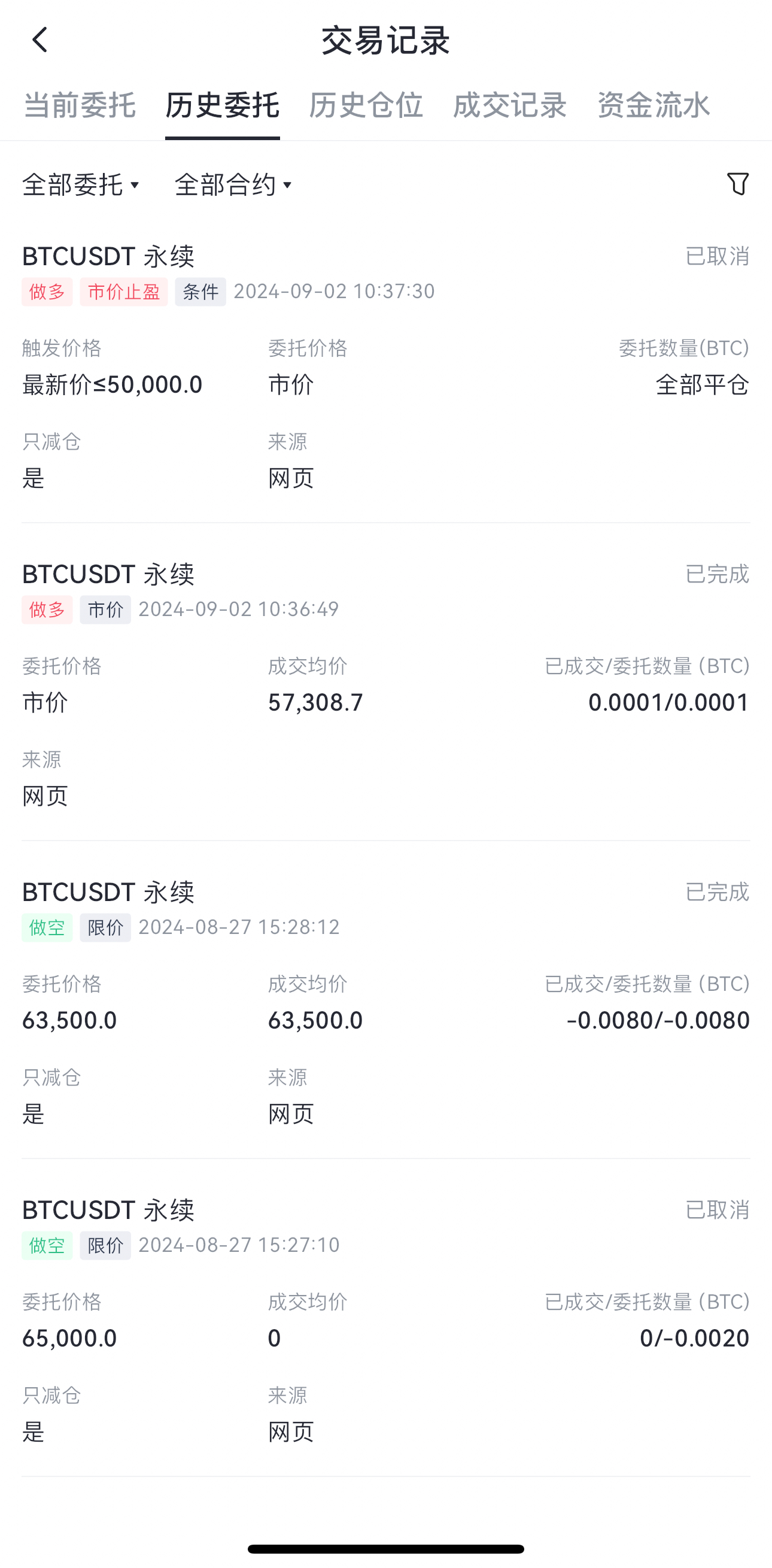 在仓位区,点击“历史”图标,可以在【交易记录】—【历史委托】看到所有模拟交易的详细记录和状态。