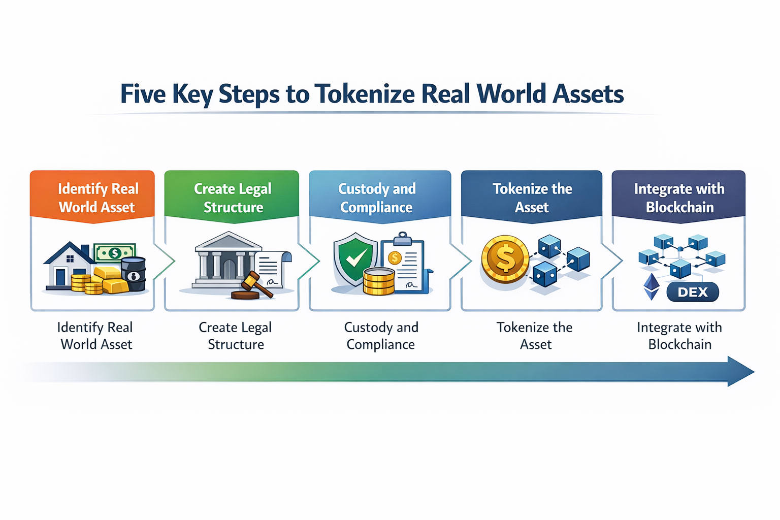 一个完整的 RWA 项目一般会经历以下五个步骤。