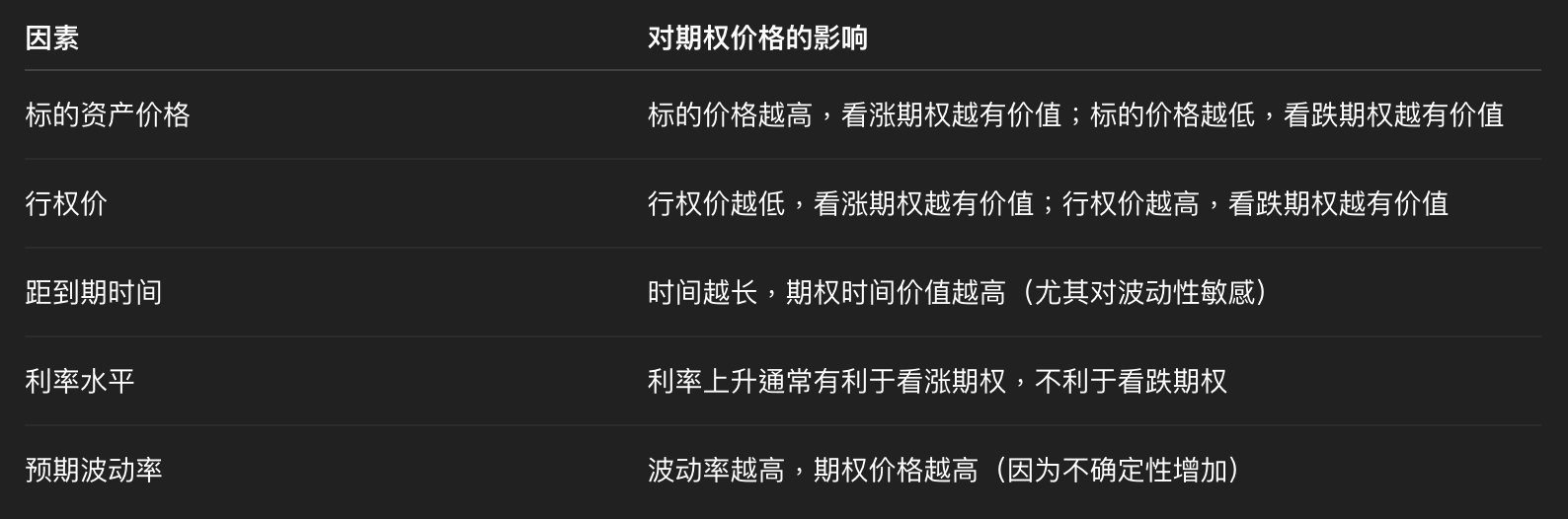 期权价格并不仅仅由标的资产当前价格决定,而由多个变量共同影响: