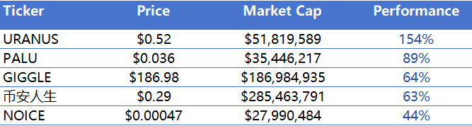 过去一周内涨幅前五的Meme币
