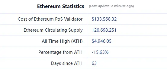 ETHUSD :现价 4,170美元,历史最高价 4,946 美元,距最高价跌幅约15.63%。