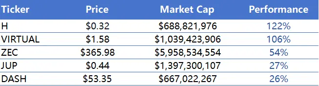 1.本周涨幅前五的VC币和Meme币