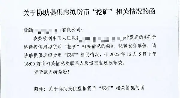 据了解,不少矿场在月初就已收到国家发改委转发的公函,要求“根据央行要求,向发改委反馈挖矿情况”。