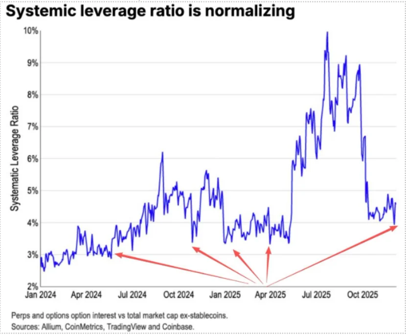 在 1011 下跌中 ETH 的期货杠杆盘被充分清理,最后已经杀到现货的杠杆盘,同时很多对 ETH 信仰不足,导致这很多远古 OG 纷纷减仓逃跑。根据 Coinbase 数据,币圈的投机杠杆已经降到历史低点区域 4% 。
