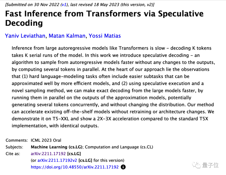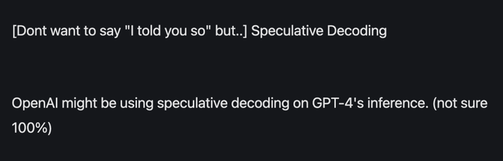 老哥随后公布了秘诀,答案很简单,就是投机采样(speculative sampling/decoding)。