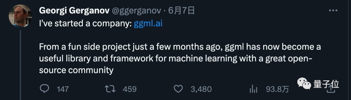 新公司ggml.ai,主打llama.cpp背后的C语言机器学习框架,致力于在边缘设备上运行AI。
