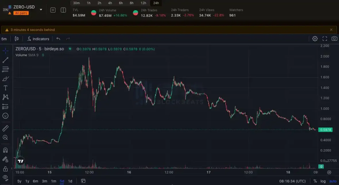 据 BlockBeats 报道,ZERO 代币在 12 月 15 日短时突破了 1.7 美元的价格后,两日内回落到 0.5 美元,但在昨天晚上强势站上 1.6 美元,重回视野。