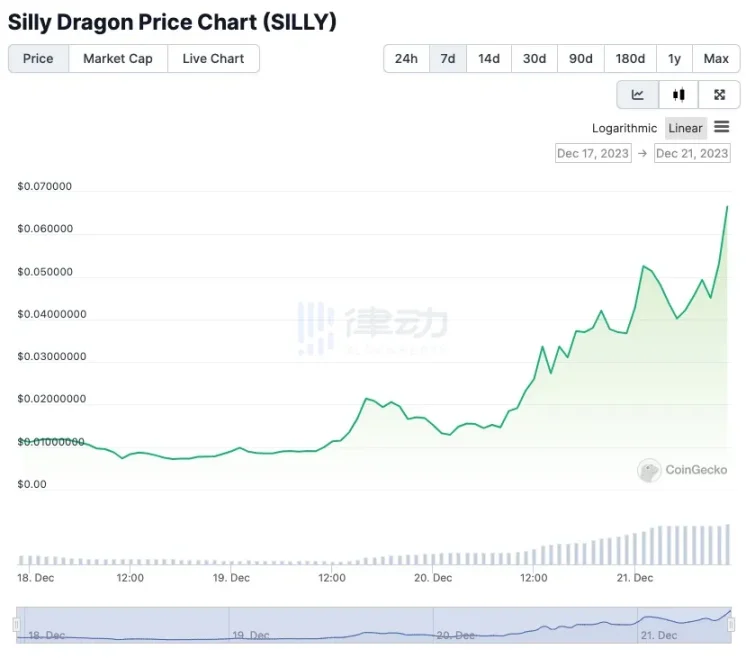 在 Toly 的多次「支持」下,SILLY 节节上涨,据 BlockBeats 消息报道,12 月 20 日,SILLY 昨日突破 0.024 美元 24 小时涨超 131%。几小时后又突破 0.047 美元,24 小时涨幅扩大至 211%。